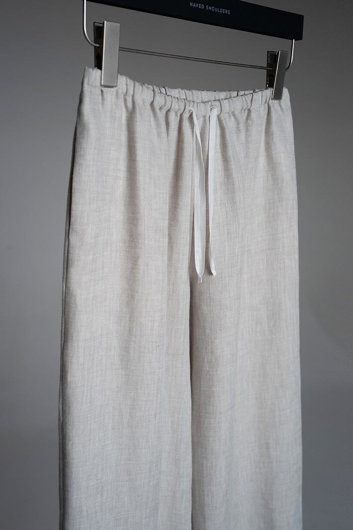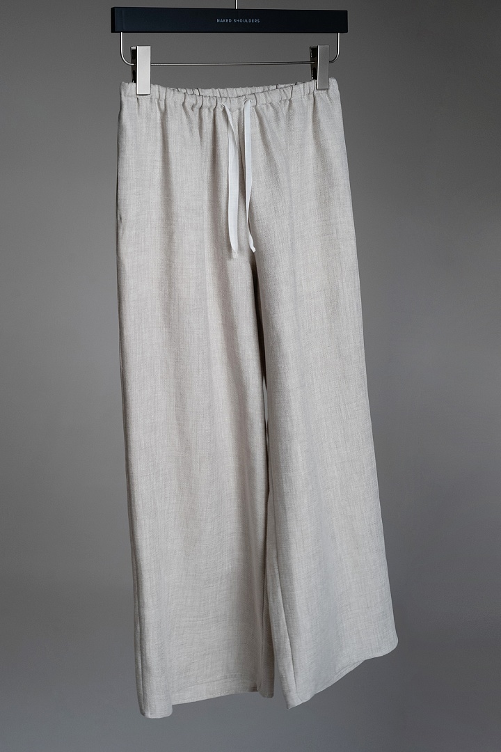 Укороченные брюки расслабленного прямого силуэта с боковыми карманами из итальянского костюмного льна с текстурированным плетением в елочку. Вариативность посадки за счет кулиски на талии. Изделие является частью комплекта и дополняется жакетом Roy в тон.