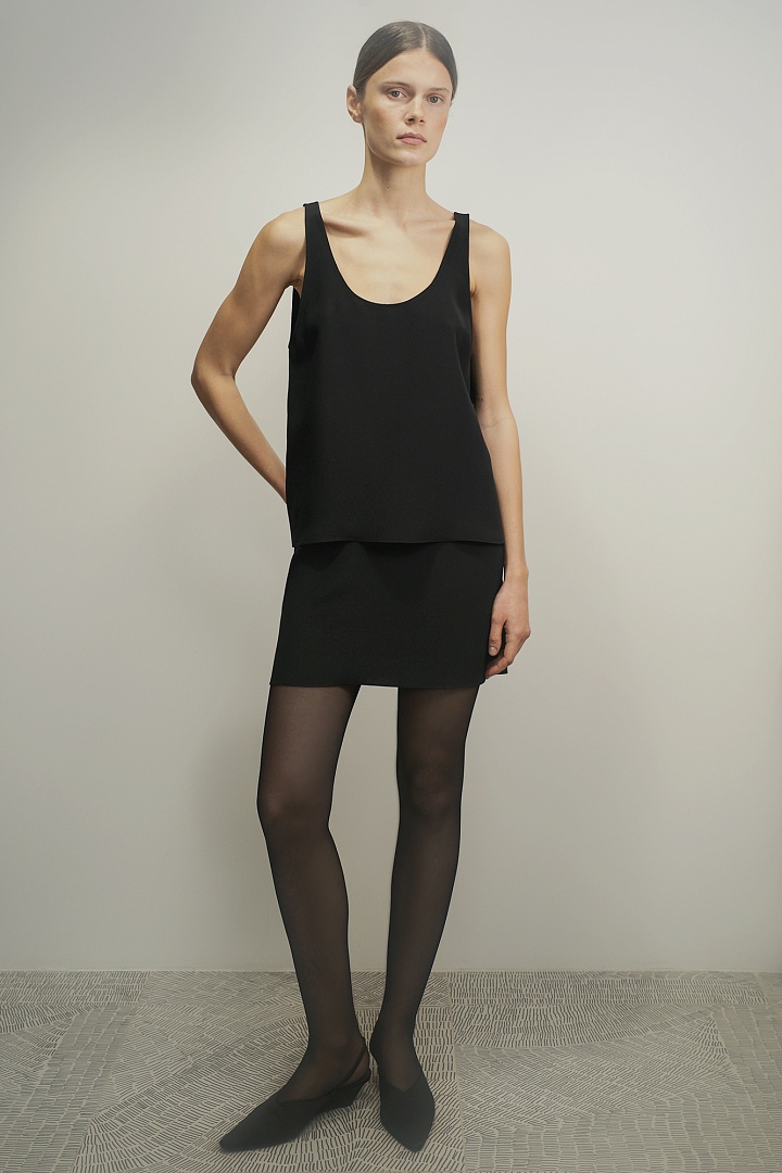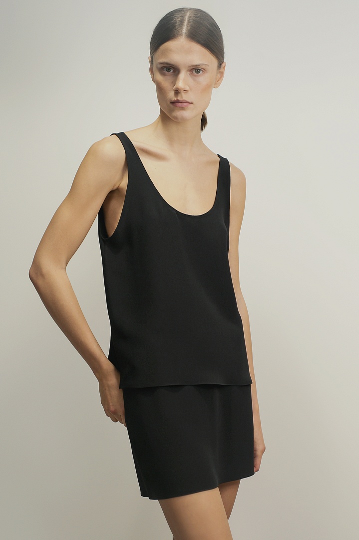 Мини юбка из матового шелка в черном цвете.