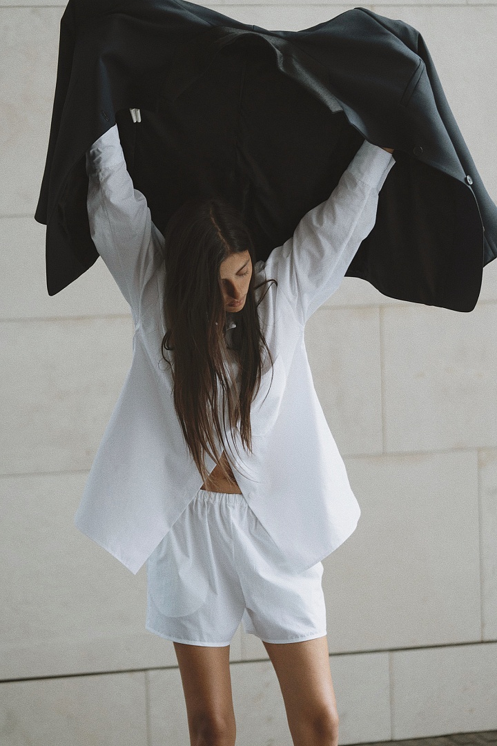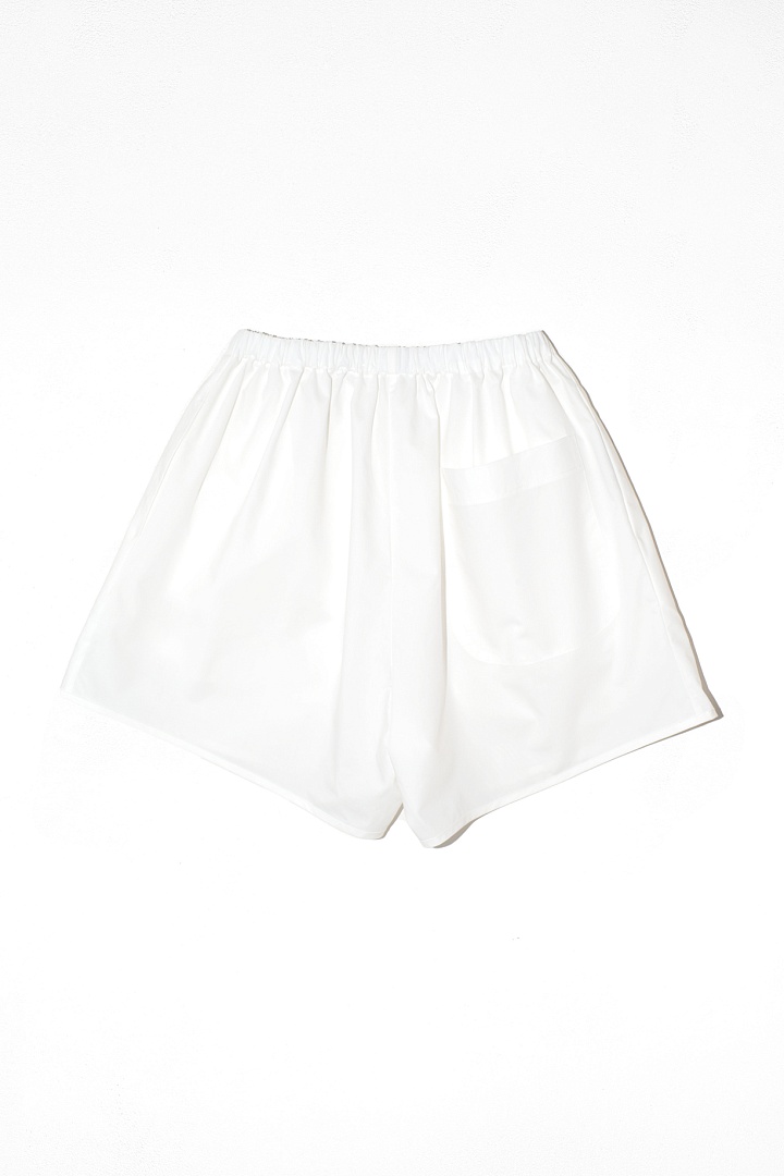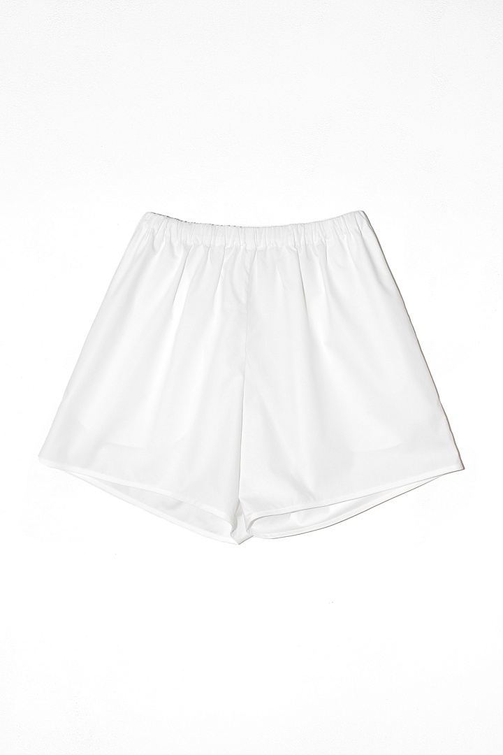 Шорты из хлопка с карманами и резинкой на талии в молочно-белом оттенке в длине мини.