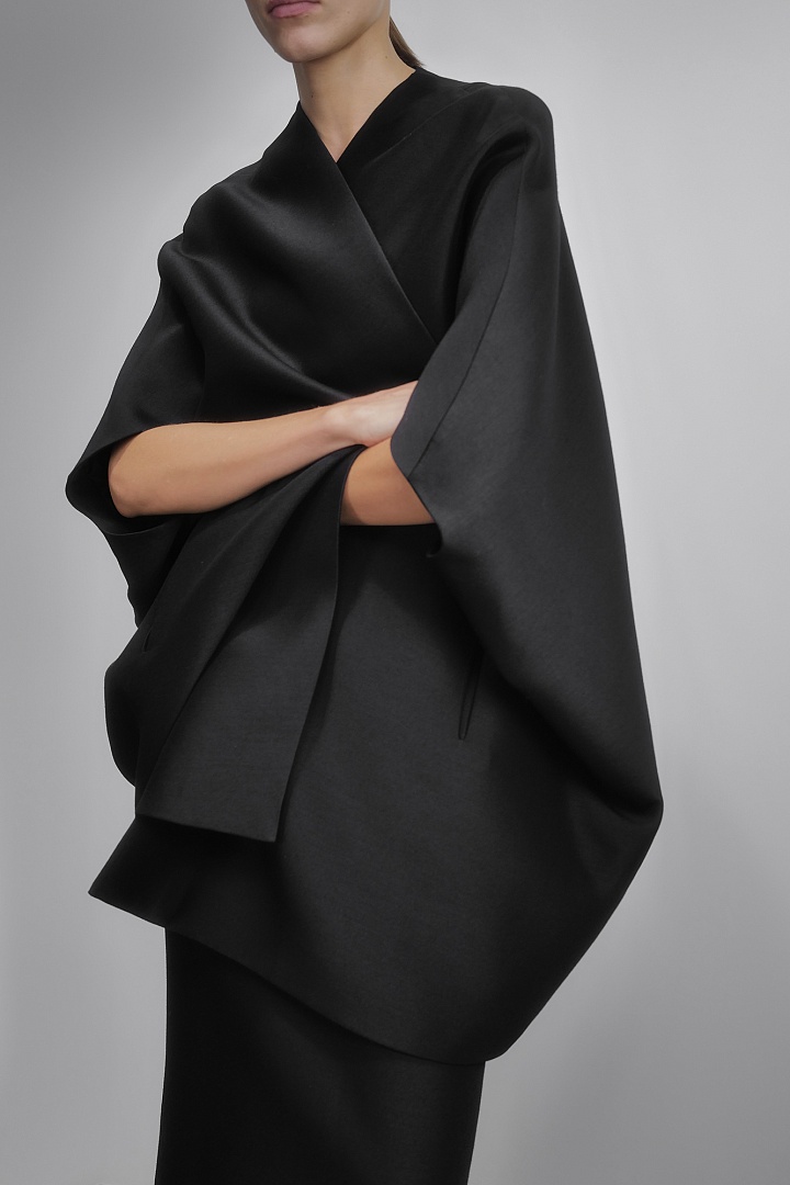 Кейп из плотной шелковой тафты с добавлением шерсти, на шелковой подкладке.